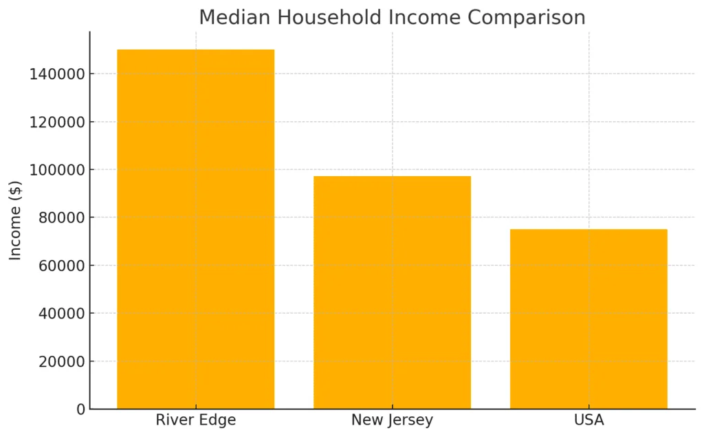River Edge boasts a median household income of $150,073, which far exceeds the national average of $75,149. This affluence contributes to the town’s stability and appeal, as residents have the financial resources to maintain and improve their properties. The area’s strong economy also supports a vibrant housing market, making River Edge an excellent long-term investment for buyers.
